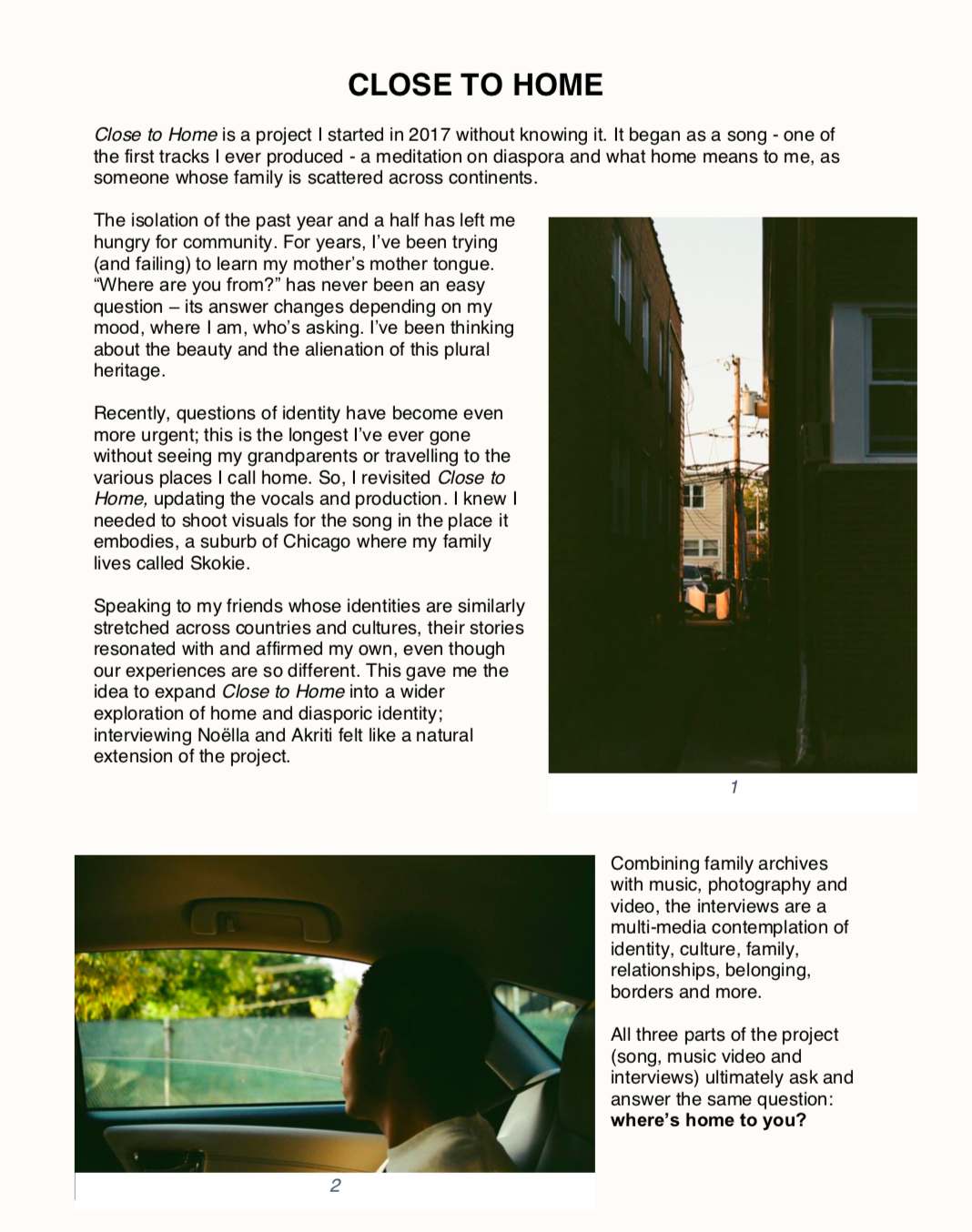 CLOSE TO HOME PROJECT